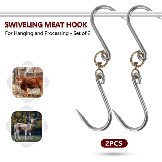 Swiveling Meat Hooks for Tripod Deer Game Hoist: Ideal for Hanging, Smoking, Giant Fish, Meat Processing, and Bacon Hanging.
