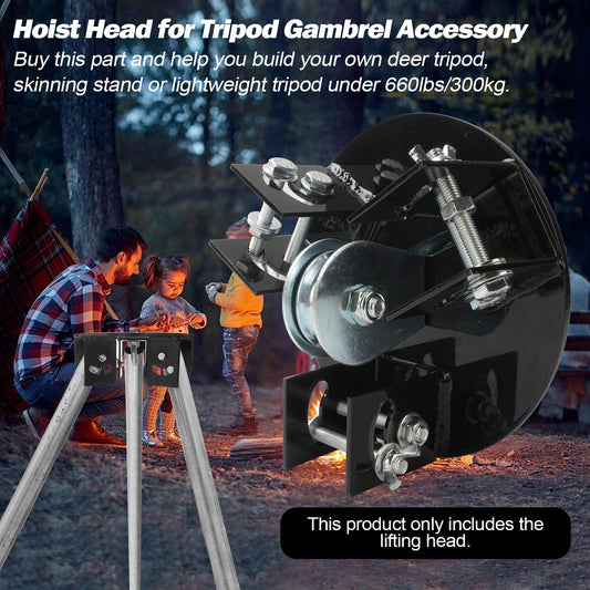 Deer Hunting Stand Accessory: Head Mount for Tripod Game Hoist, assists in skinning, processing and lifting while hunting