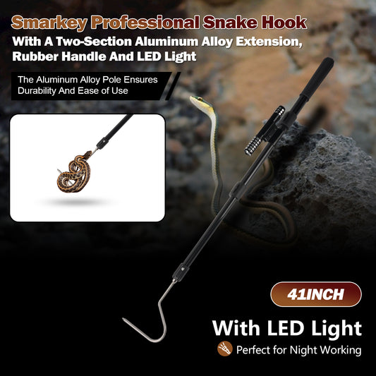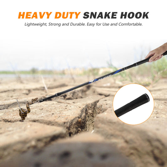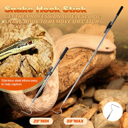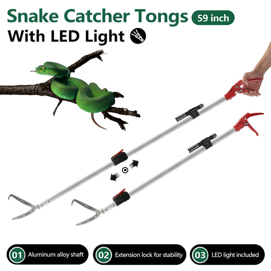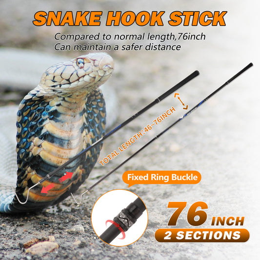 Snake Hook Catcher Tool Kit features a 59-inch tongs grabber hook stick designed for safely handling various snakes, including rattlesnakes, pythons, copperheads, and other reptiles during removal.