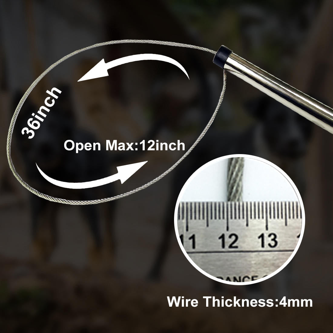 Crafted from stainless steel, it measures 44 inches (112cm) in length and weighs 2.4 pounds, providing a sturdy and reliable tool for animal control.