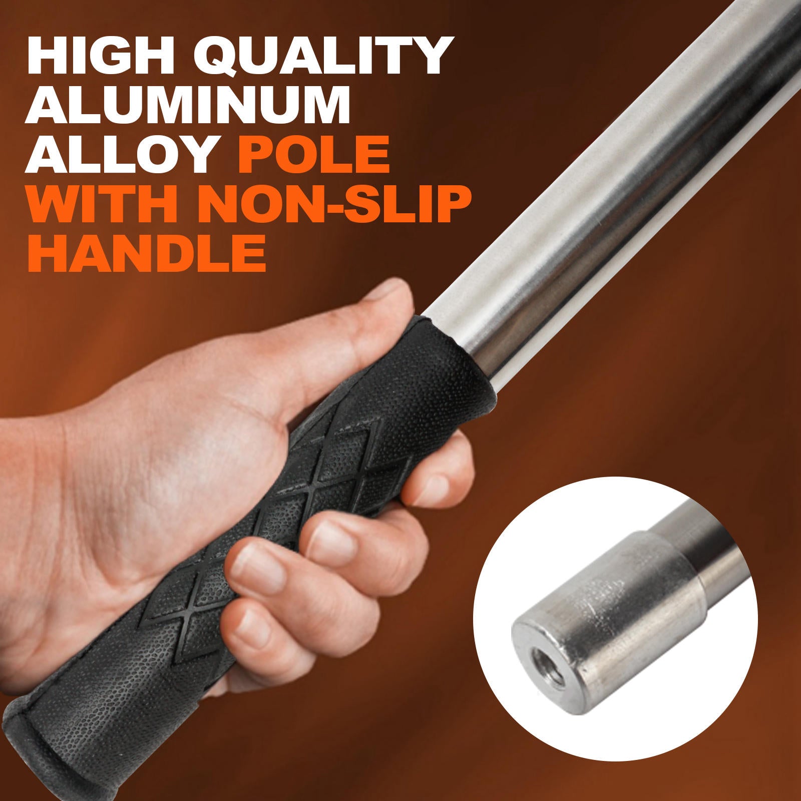 Durable and robust aluminum alloy pole designed for heavy-duty professional use, featuring a non-slip handle for enhanced grip.